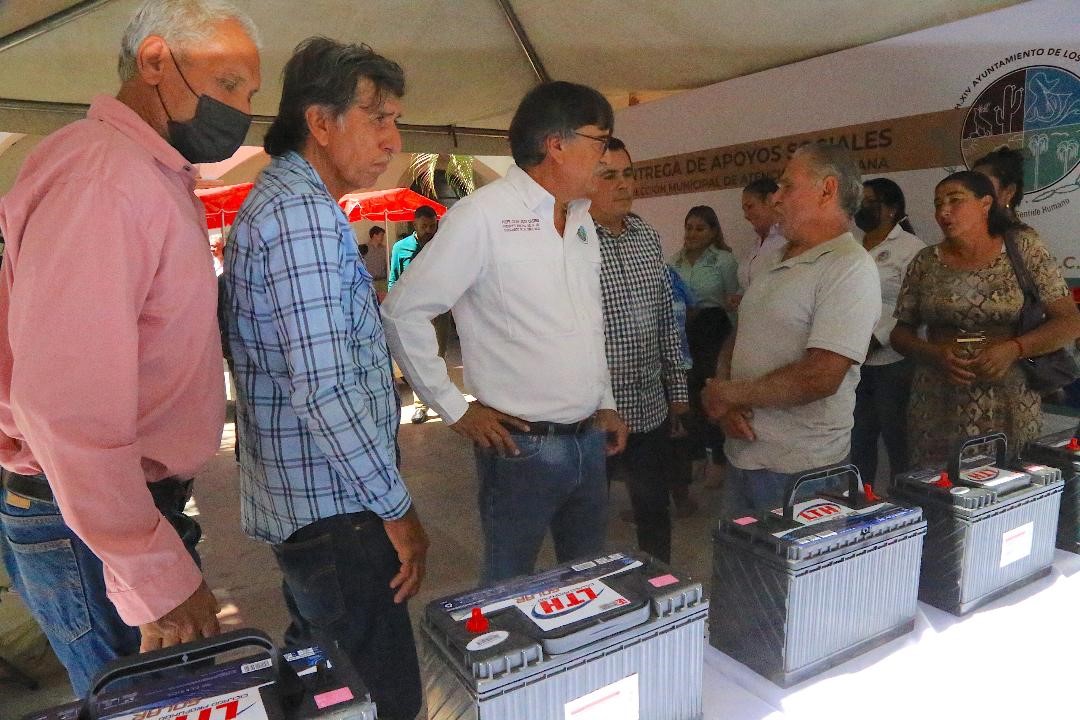 Por su parte, la directora municipal de Atención Ciudadana, Dina Margarita De La Paz Araiza, informó que estos apoyos consistieron en la entrega de 6 acumuladores para plantas solares a familias que habitan en la subdelegación de La Cieneguita, 4 carros para preparar alimentos y 15 bultos de cemento, así como apoyos económicos.