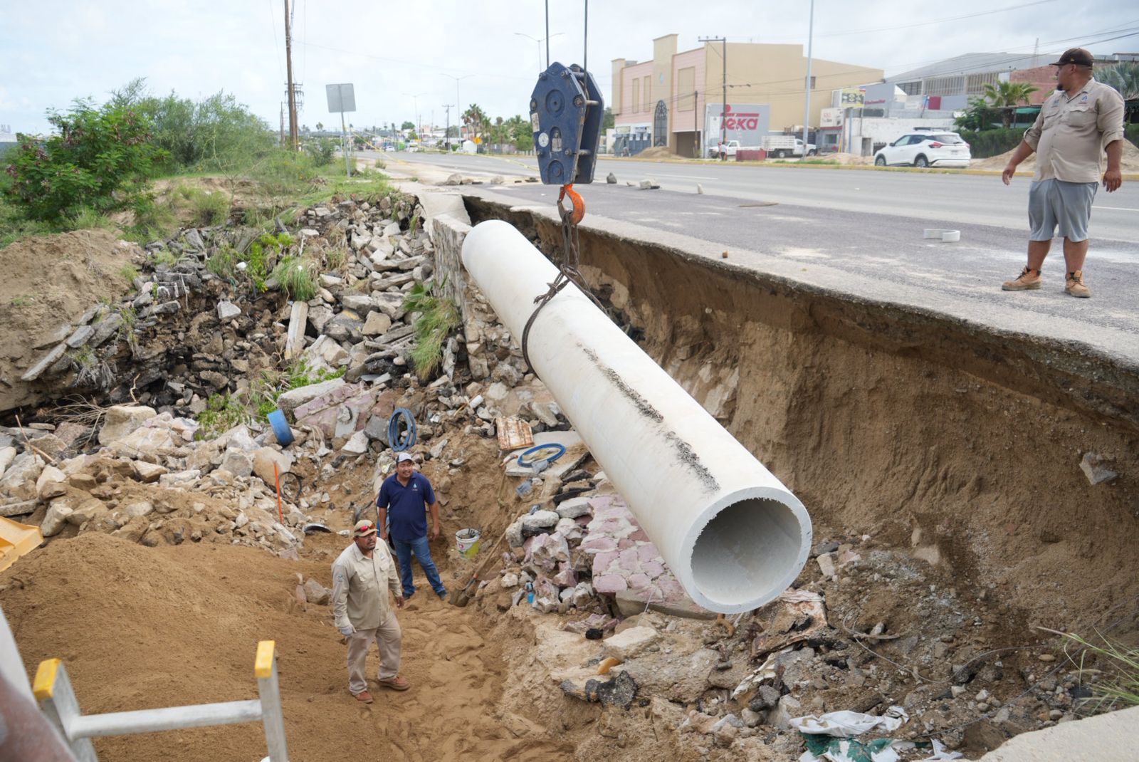 San Jose del Cabo, B.C.S.- El Organismo Operador Municipal del Sistema de Agua Potable, Alcantarillado y Saneamiento de Los Cabos informa que, derivado de las lluvias ocasionadas por el huracán Lorena, se registró un deslave en la carretera Transpeninsular, a la altura de la colonia Zacatal entre Chedraui y Autozone, lo que ocasionó que una fuerte corriente de agua arrastrara escombros y basura hasta impactar el acueducto número 1, generando una fisura en la infraestructura hidráulica.