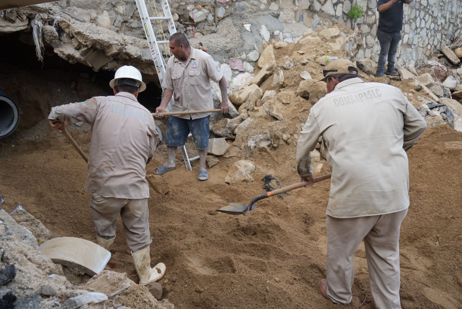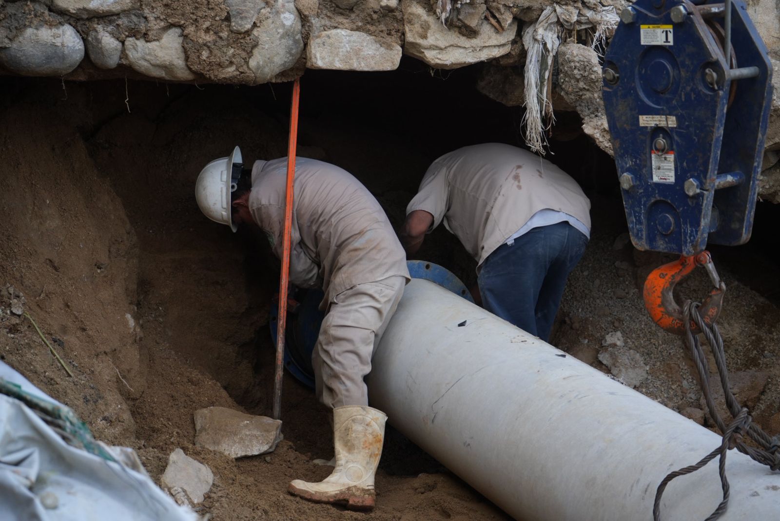 Una vez que cesaron las lluvias, personal de la Dirección de Reparación y Mantenimiento de OOMSAPAS detectó la afectación e inició de inmediato con las labores de retiro de los tramos dañados. Con el apoyo de maquinaria pesada, como retroexcavadora y grúa telescópica, y la participación de un equipo de 10 trabajadores, se llevó a cabo la sustitución de dos tramos de tubería del acueducto.
