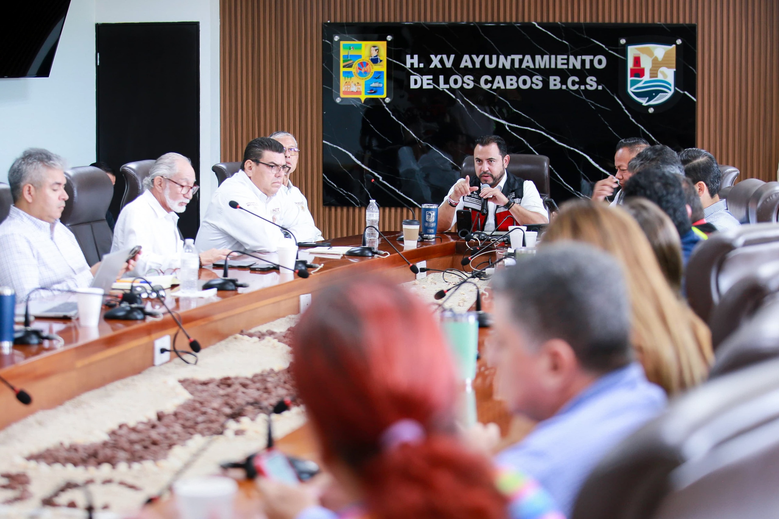 Fue la sala de juntas del Instituto del Deporte del Municipio de Los Cabos (INDEM) el lugar sede donde el alcalde hizo un llamado a continuar fortaleciendo estrategias y esfuerzos para el control y ordenamiento vial ante los trabajos de construcción proyectados para los próximos 15 días, con el objetivo de generar el menor número de afectaciones a la población.