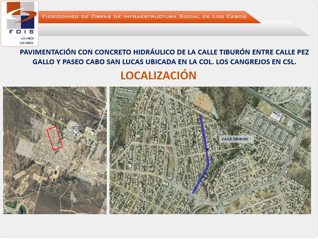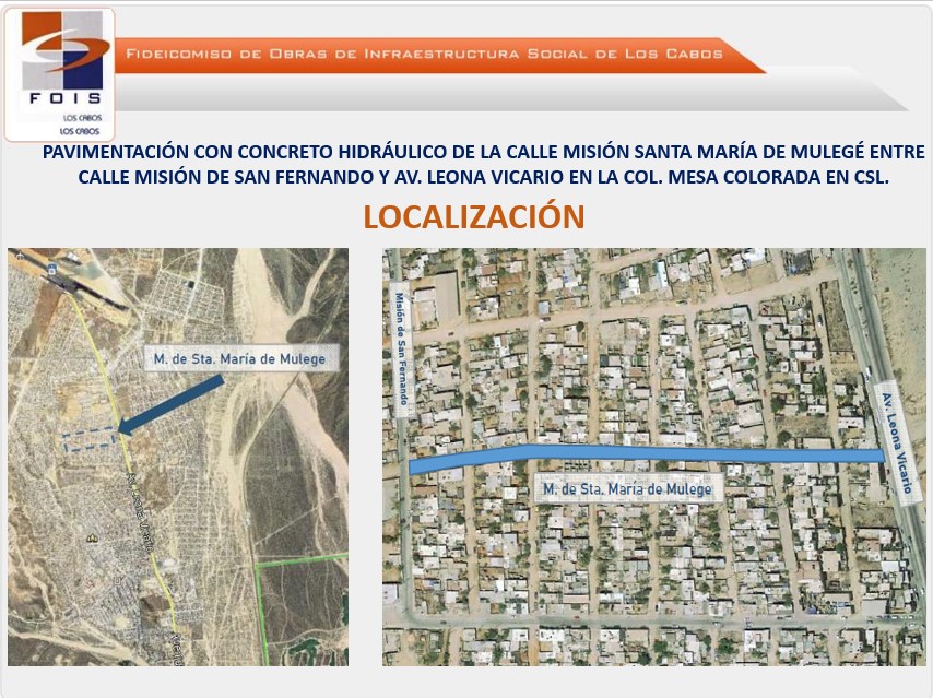 Con una inversión de casi 12 millones de pesos el Fondo de Infraestructura Social (FOIS) de Los Cabos, realizó obra de pavimentación de dos importantes vialidades en la delegación de Cabo San Lucas, sobre lo cual ya está preparando un informe.