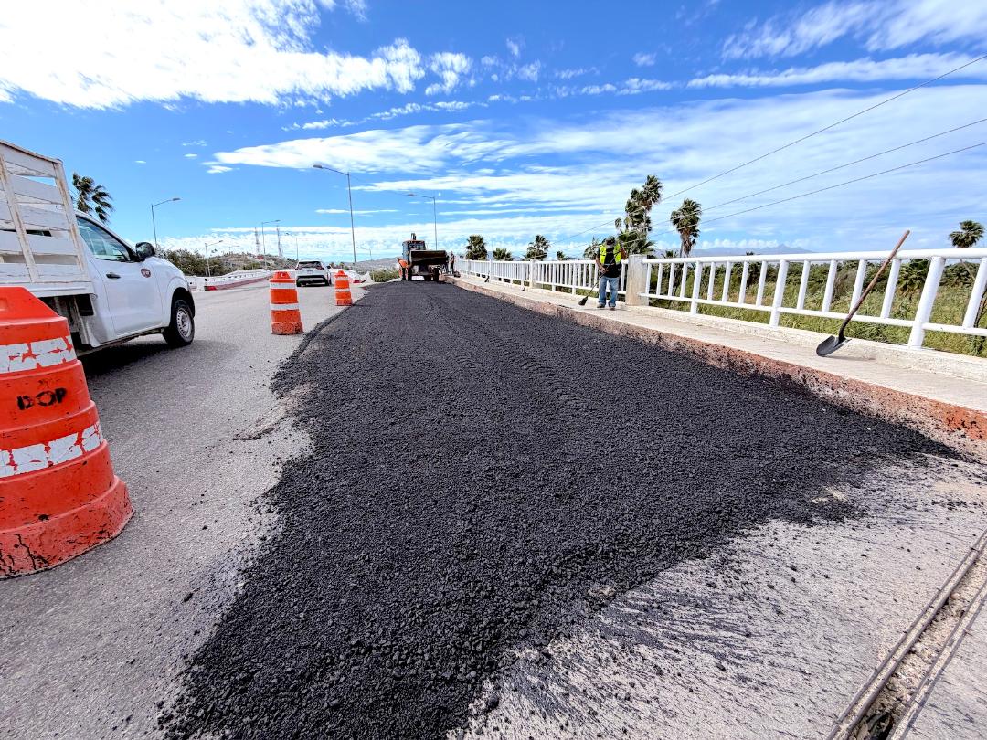 Los Cabos, Baja California Sur.– Para fortalecer la seguridad vial y mejorar las condiciones de movilidad en el municipio, el XV Ayuntamiento de Los Cabos concluyó los trabajos de bacheo en el puente Centenario, en el tramo que conduce hacia la comunidad de La Playa, como parte del programa institucional “Caza Baches”.