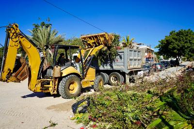 Los Cabos, Baja California Sur.– Con el propósito de fortalecer la limpieza urbana y fomentar la participación ciudadana, la delegada de Cabo San Lucas, Karina de la O Uribe encabezó una jornada de descacharrización y limpieza en la colonia Lomas del Sol, acompañada por el subdelegado del asentamiento, Fernando Claudio de la Rosa, personal de la delegación y con el respaldo de diversas empresas que se sumaron con maquinaria y dompes para reforzar estas acciones.