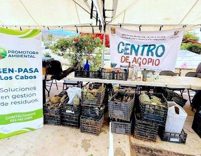 Los Cabos, Baja California Sur.– El XV Ayuntamiento de Los Cabos, a través de la Dirección General de Ecología y Medio Ambiente y la Dirección Municipal de Educación, Divulgación y Promoción Ambiental, realizó una jornada de acopio de residuos reciclables en la plaza pública León Cota Collins, en Cabo San Lucas.