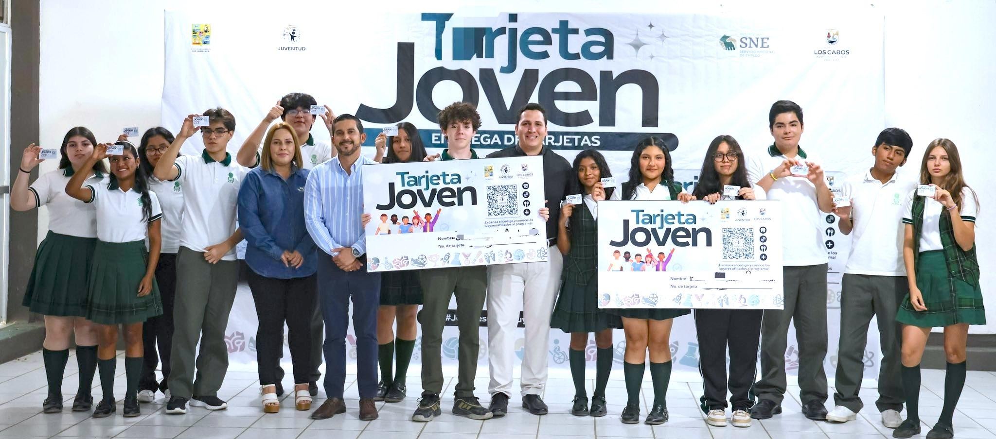 Los Cabos, Baja California Sur.- Con el objetivo de impulsar el bienestar, la participación y el desarrollo integral de las juventudes, el XV Ayuntamiento de Los Cabos, a través del Instituto de la Juventud (INJUVE), llevó a cabo la primera entrega del programa “Tarjeta Joven” en las instalaciones del Cobach 04 de Cabo San Lucas, con la presencia del director municipal de Gobierno Amado Ruiz Espinoza en representación del alcalde Christian Agúndez Gómez y el director general del INJUVE José Luis Gutiérrez Crespo.