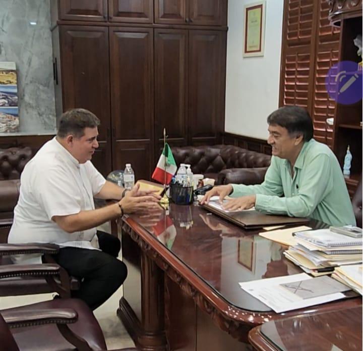 Los Cabos B.C.S., a 11 de septiembre de 2024.- El alcalde de la XIV Administración Municipal Oscar Leggs Castro, se reunió hoy por la mañana, con el representante del presidente de la Confederación de Grandes Logias Regulares de los Estados Unidos Mexicanos Fernando Martínez Acosta; también asistió Valerio Antonio Aréchiga de la Peña quien le hizo una cordial invitación al alcalde de Los Cabos para asistir al próximo CXXXVIII Consejo Masónico Nacional.