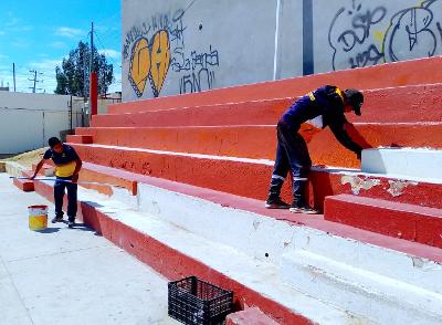 Las labores consistieron en la aplicación de pintura, mejorando las condiciones del espacio para la práctica deportiva y la convivencia de niñas, niños y jóvenes de la zona.