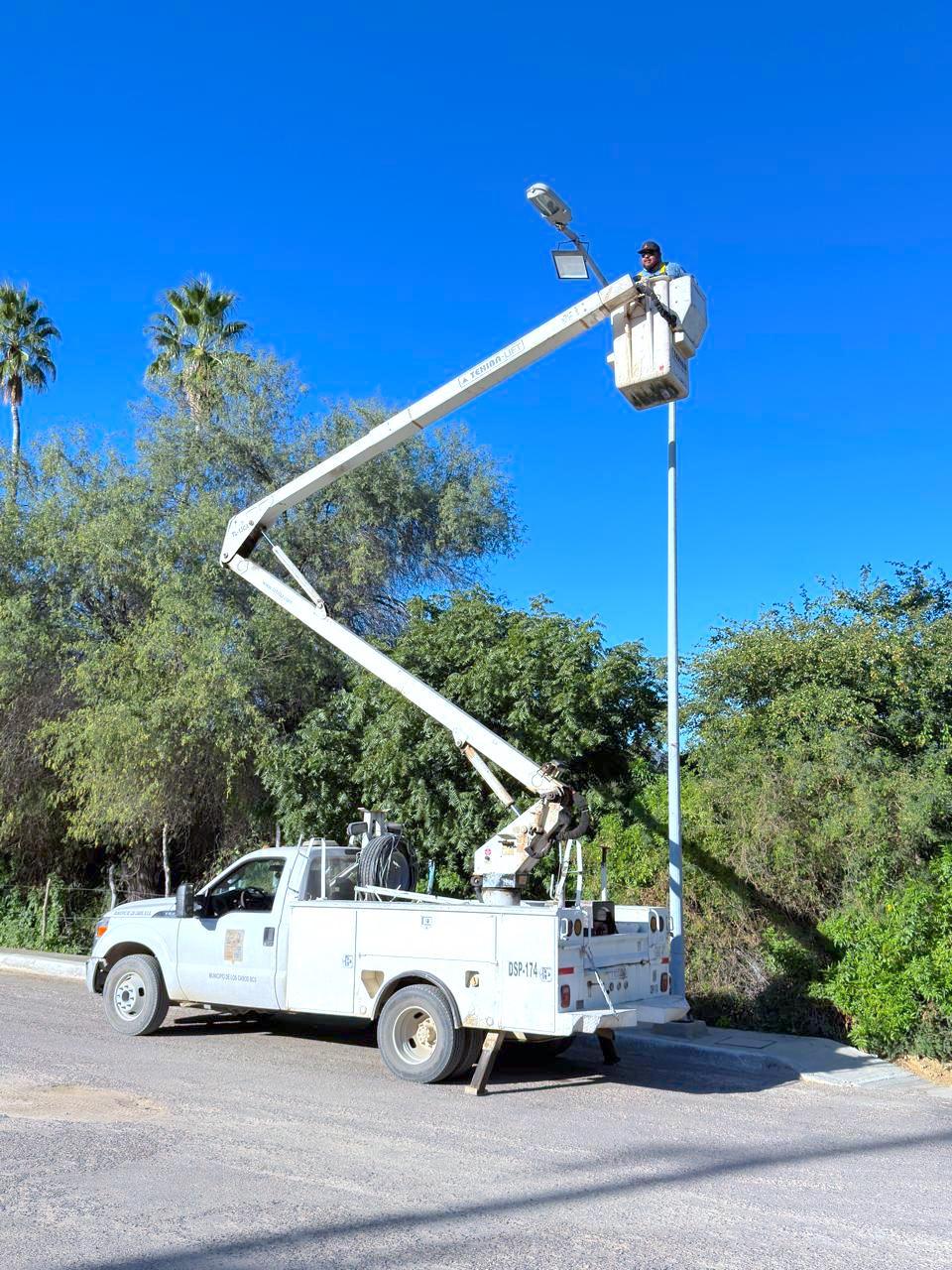 Los Cabos, Baja California Sur.- El XV Ayuntamiento de Los Cabos, a través de la Dirección General de Servicios Públicos informa que se mantienen de manera permanente los trabajos de mantenimiento, reparación y restablecimiento del alumbrado público en diversas colonias del municipio, con el objetivo de mejorar la seguridad, la visibilidad y las condiciones de movilidad en espacios públicos y vialidades.