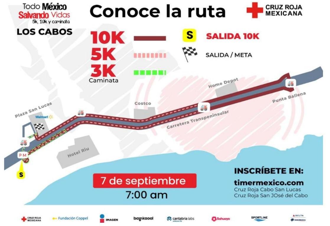 Al respecto, el coordinador de Gobierno en Cabo San Lucas, Jesús Pedraza Lara informó que la carrera contará con recorridos de 3, 5 y 10 kilómetros, iniciando a las 07:00 horas, con cierres parciales de los carriles centrales a partir de las 06:00 horas, con dirección a San José del Cabo, hasta el área de Punta Ballena, donde será el retorno hacia la meta ubicada en la Plaza San Lucas. Precisó que los carriles laterales permanecerán abiertos para la circulación vehicular.
