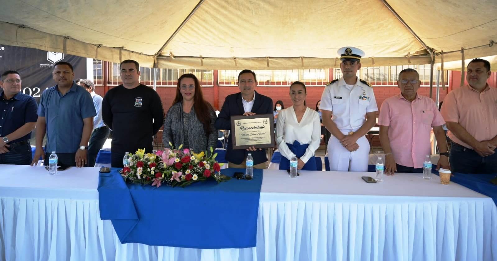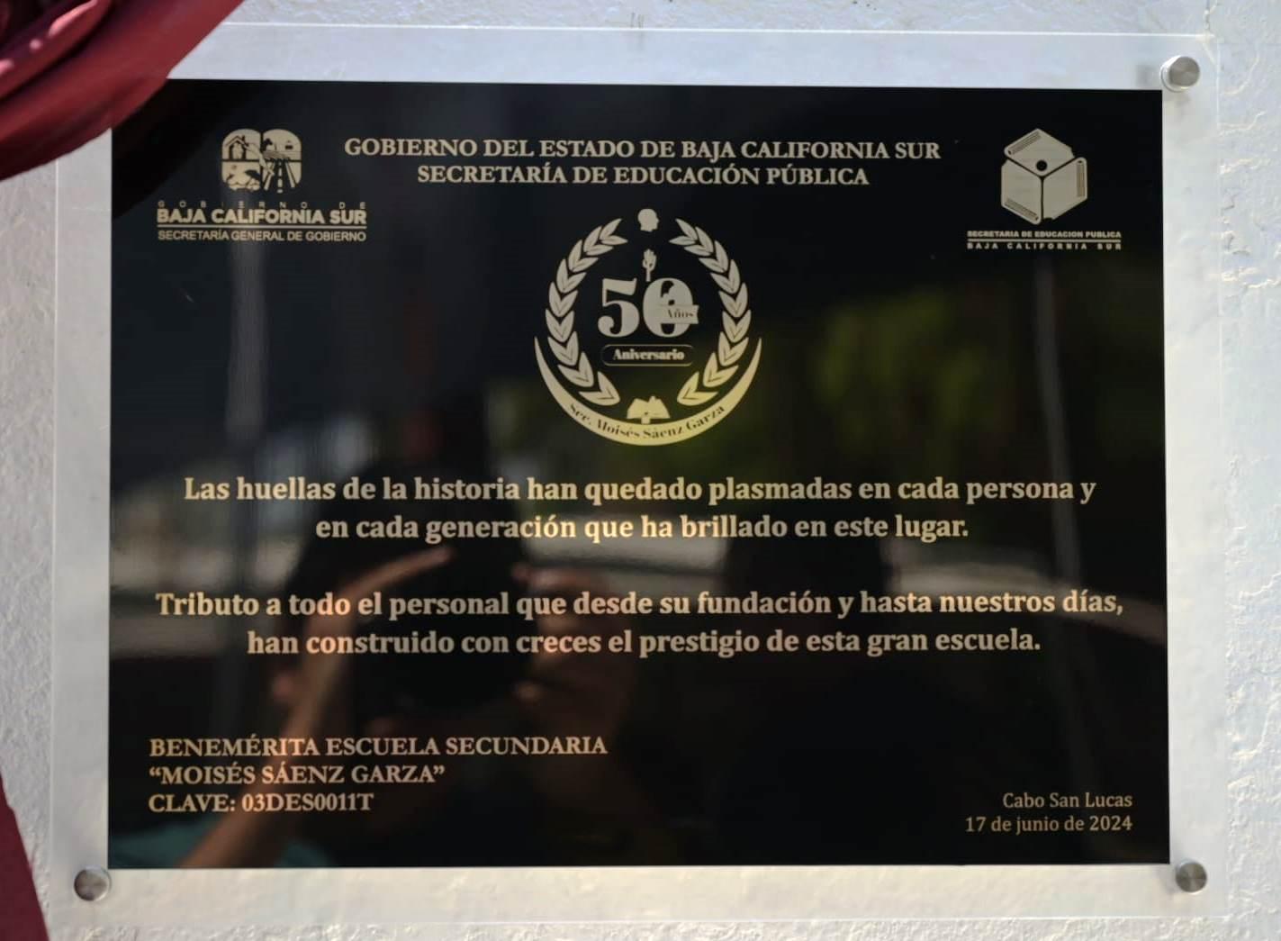 Asimismo, el director de la escuela secundaria Moisés Sáenz Garza Edgar Alejandro Rochín Alamillo agradeció la presencia de todas las personas asistentes ya que le dieron un realce a este importante evento para la institución: “para mí es un orgullo y un honor haber tenido la fortuna de ser el director de esta escuela de tradición y prestigio en Cabo San Lucas; nuestra escuela ha sido un faro de conocimientos y valores, formando generaciones de ciudadanos y ciudadanas responsables y comprometidas”. Para concluir, se hizo entrega de reconocimientos al personal activo con 30 años de servicio, así como al personal docente jubilado y se develó una placa conmemorativa. Cabe destacar que por la tarde se llevará a cabo un evento artístico cultural.