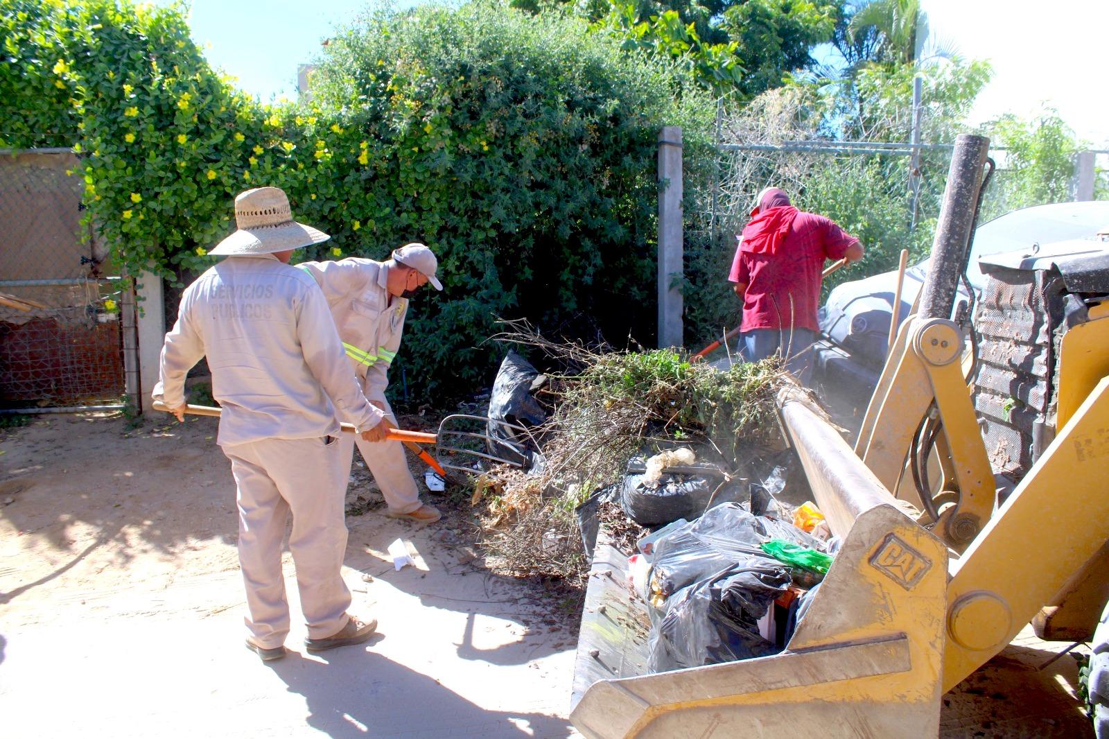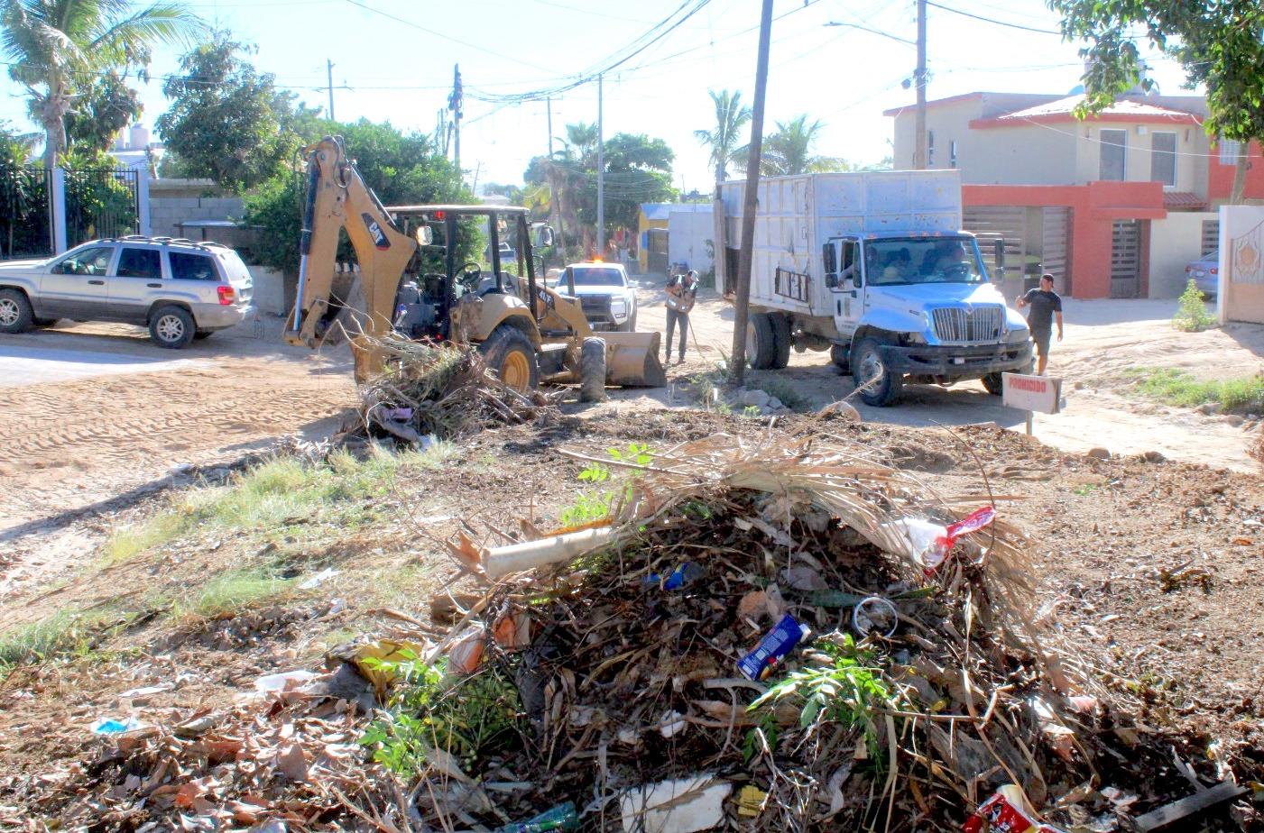 Los Cabos, Baja California Sur.– Con el objetivo de mantener entornos más limpios y seguros para todas las familias, el equipo de Servicios Públicos ha intensificado durante los últimos días las labores de recolección de cacharros, basura acumulada, ramas y desechos en las colonias Santa Rosa INVI, Zacatal y Vista Hermosa en San José del Cabo.
