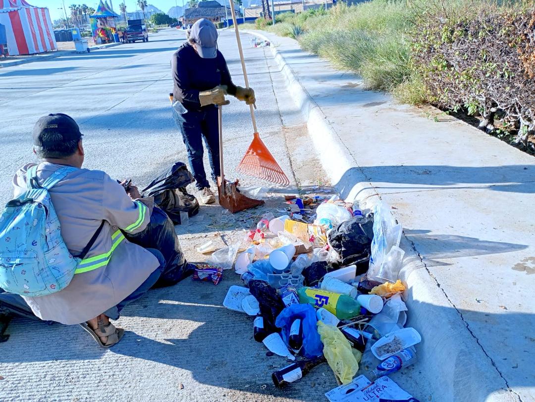 Los Cabos, Baja California Sur.- Antes, durante y posterior al desarrollo de las Fiestas Tradicionales de la delegación de Cabo San Lucas, el equipo de la Dirección General de Servicios Públicos, implementó un operativo especial de limpieza y recolección de residuos, con el objetivo de mantener en óptimas condiciones las áreas donde se realizaron los eventos, garantizando espacios seguros y agradables para las y los asistentes.