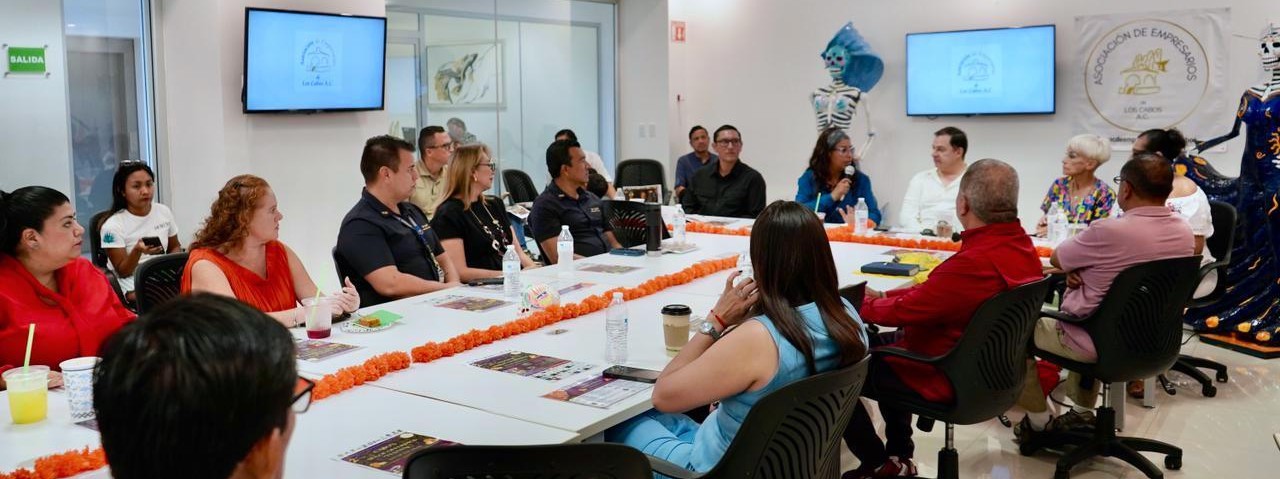 Los Cabos, Baja California Sur. — En el marco de la próxima celebración del Día de Muertos, la delegada municipal de Cabo San Lucas, Karina de la O Uribe, encabezó una rueda de prensa en las instalaciones del CATTAC, donde se dieron a conocer los eventos que conforman el amplio programa cultural “Mar de Ofrendas”, el cual reunirá a más de ocho festivales y actividades que se desarrollarán durante la primera semana de noviembre en el centro de la ciudad.